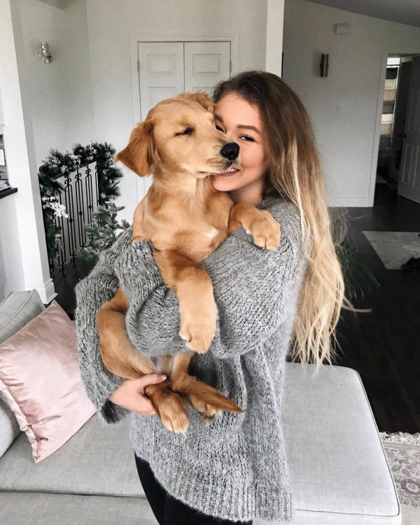 Cargándolo, porque a él le encanta. No importa si es pequeño o toda una bestia, siempre va a querer que lo mimes. Además sirve y te luces con un grandioso look.