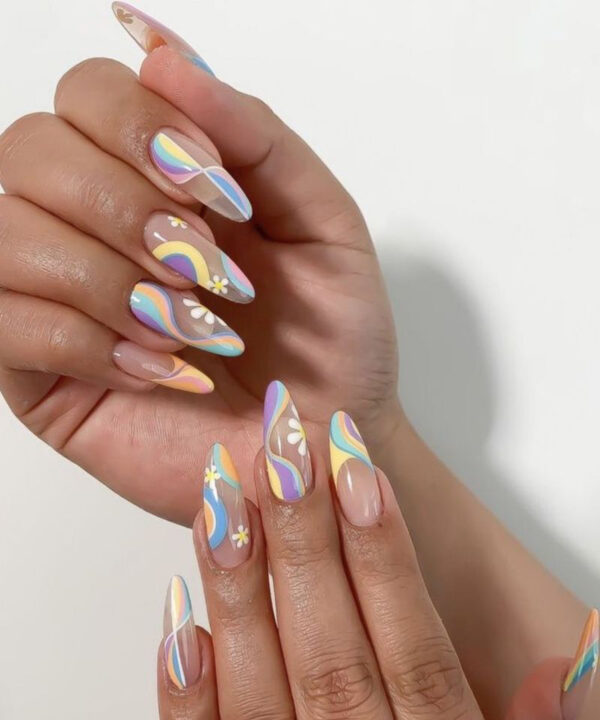 Amas el detalle y la delicadeza, usa el arte como inspiración para tus próximas uñas, con un fondo pastel.