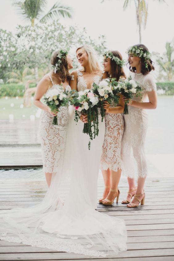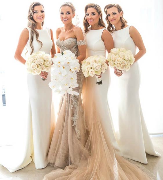 Esta es súper buena idea, que el vestido de las damas de honor tengan el mismo corte que el vestido de la novia.