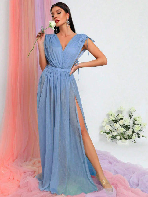 Tener una abertura larga en el vestido te dará más amplitud de movimiento para bailar toda la noche. Si te gustó este, chécalo AQUÍ.